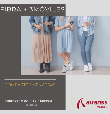 Fibra 600mbps + 3 línea móvil con 200GB de datos compartidos